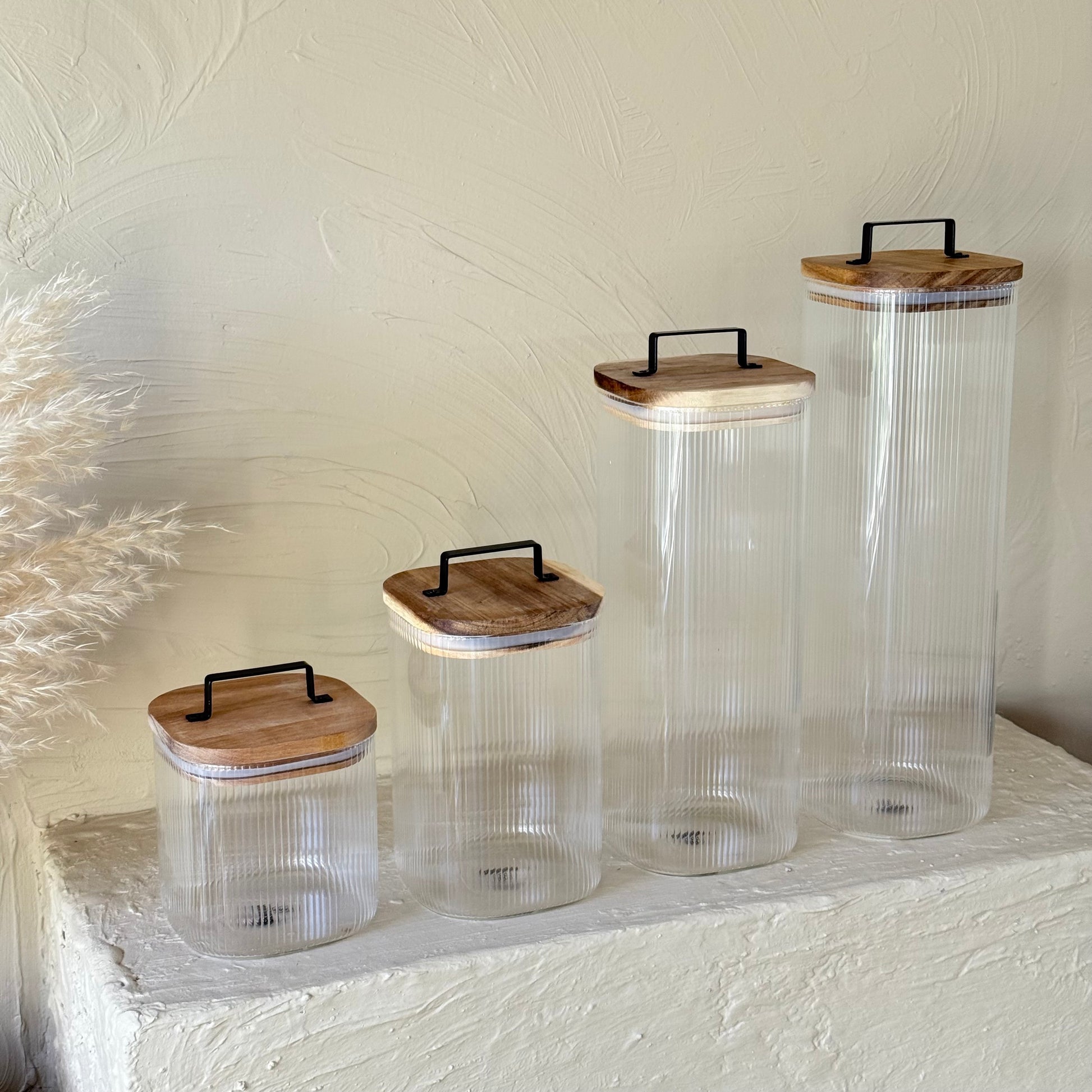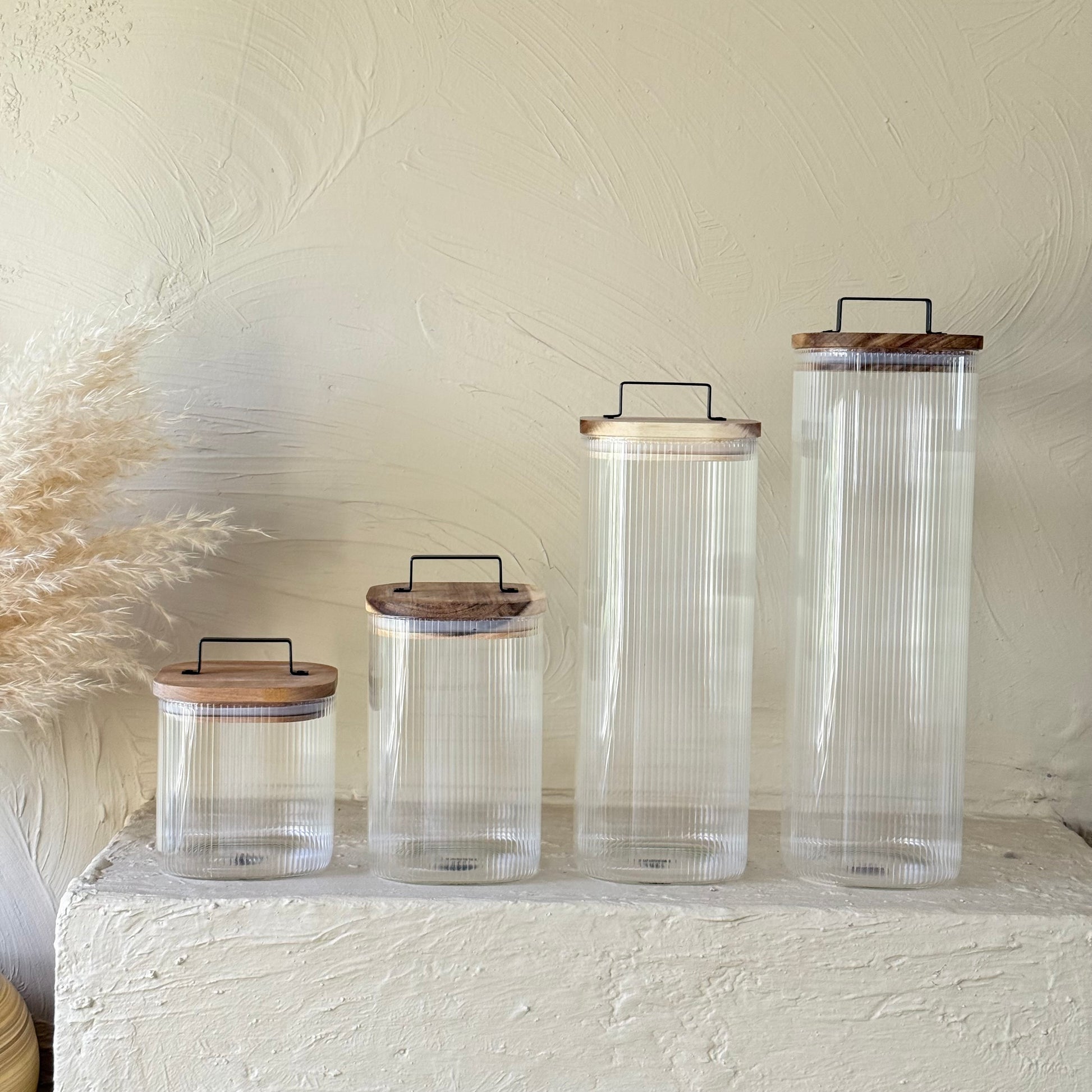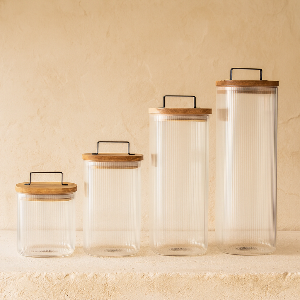 ZBERN Akasya Ağacı Kapaklı Kare Borosilikat Kavanoz Seti 4 Adet