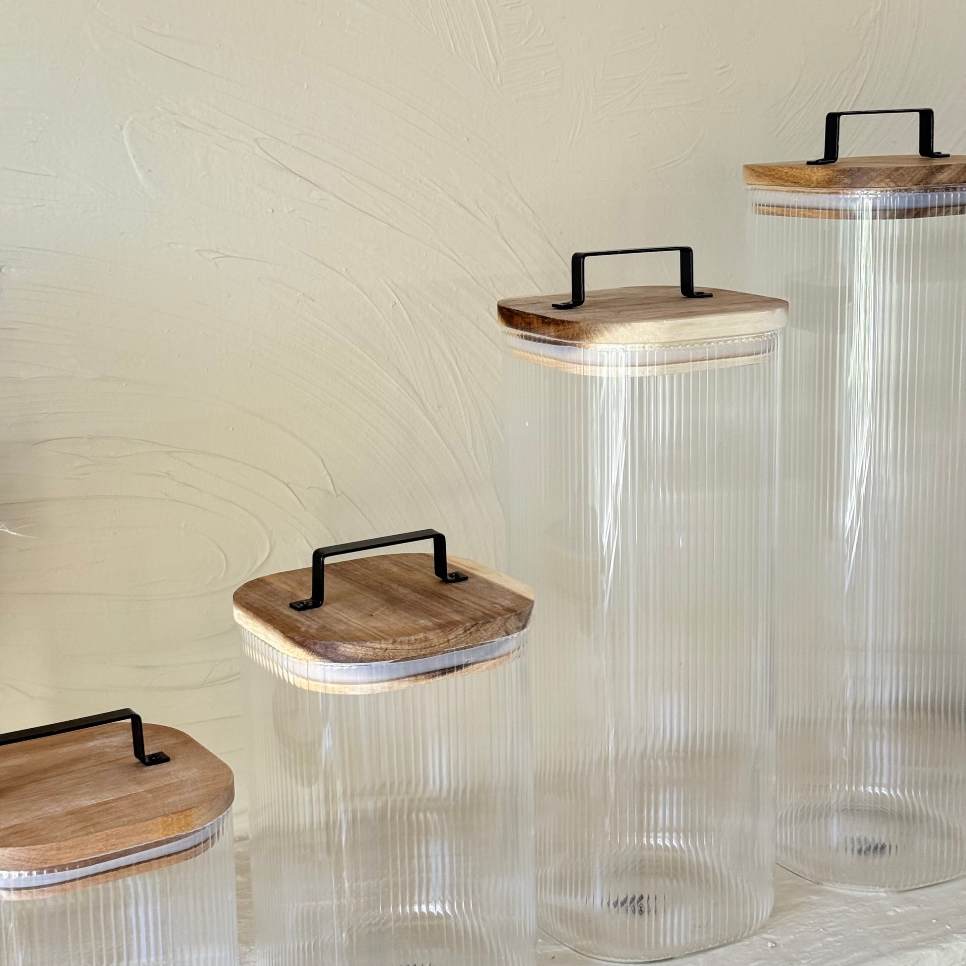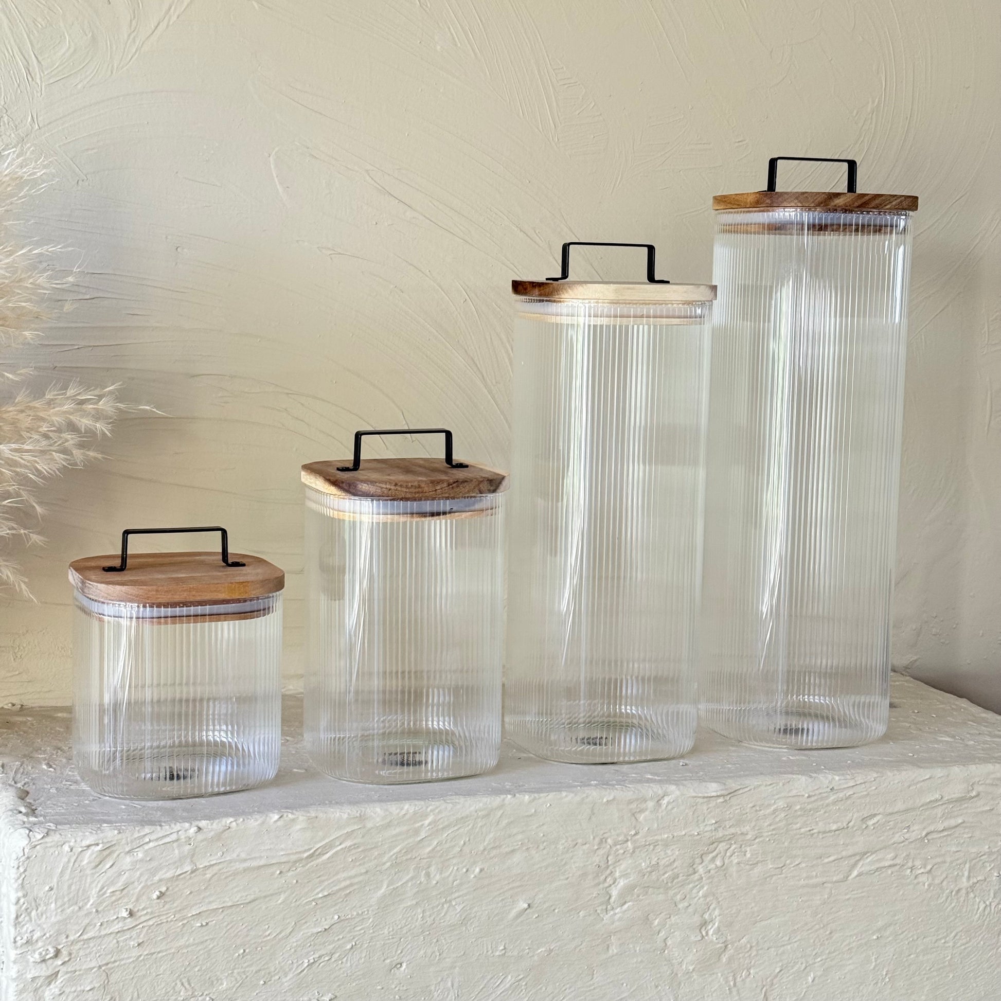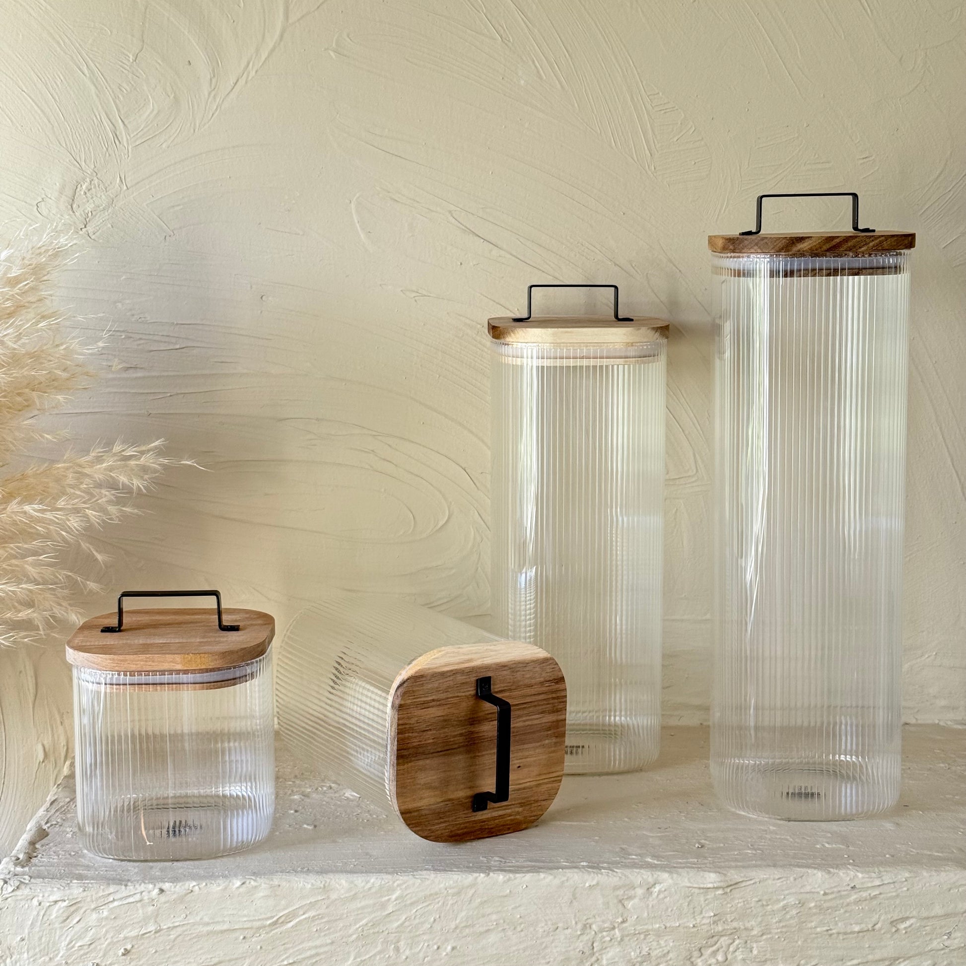 ZBERN Akasya Ağacı Kapaklı Kare Borosilikat Kavanoz Seti 4 Adet