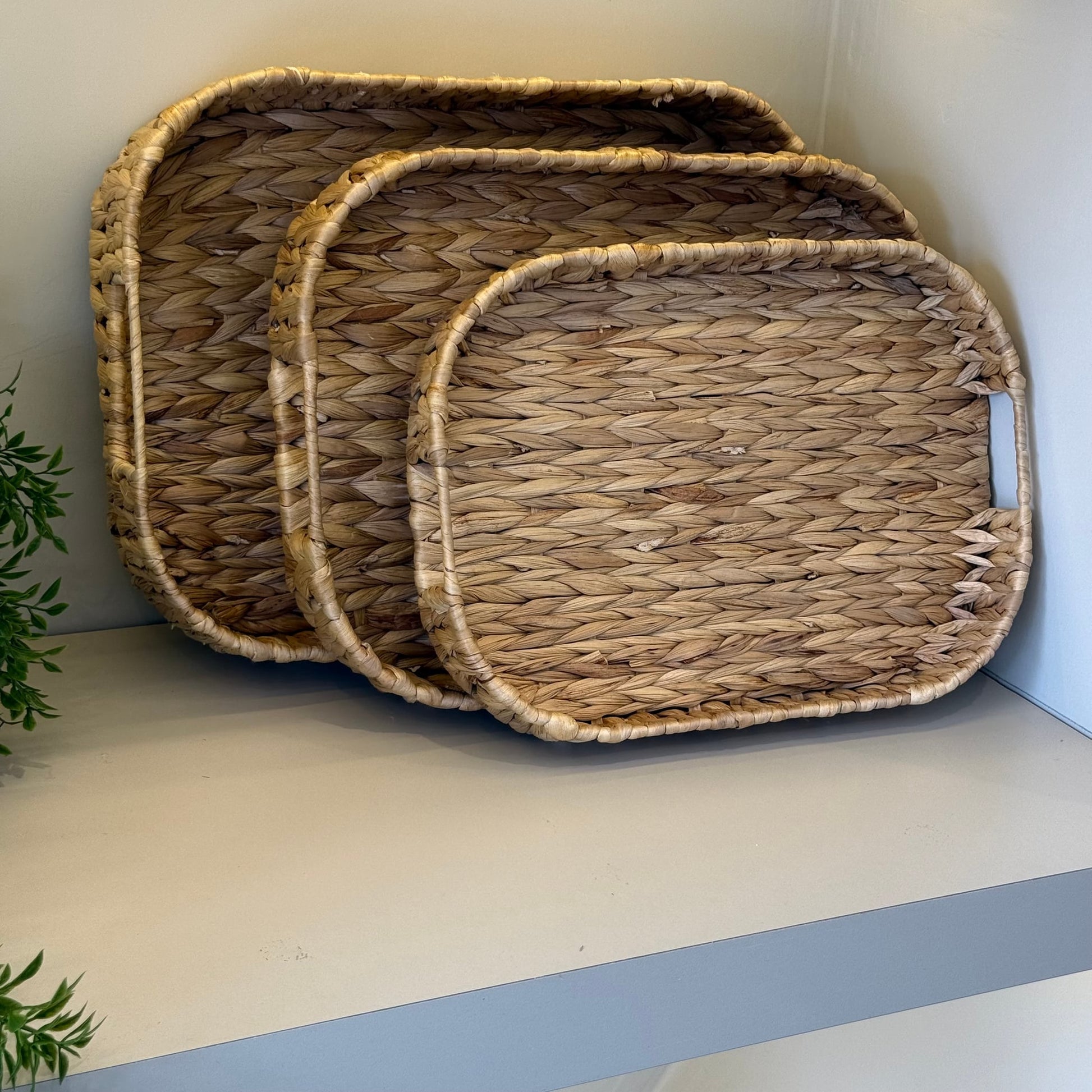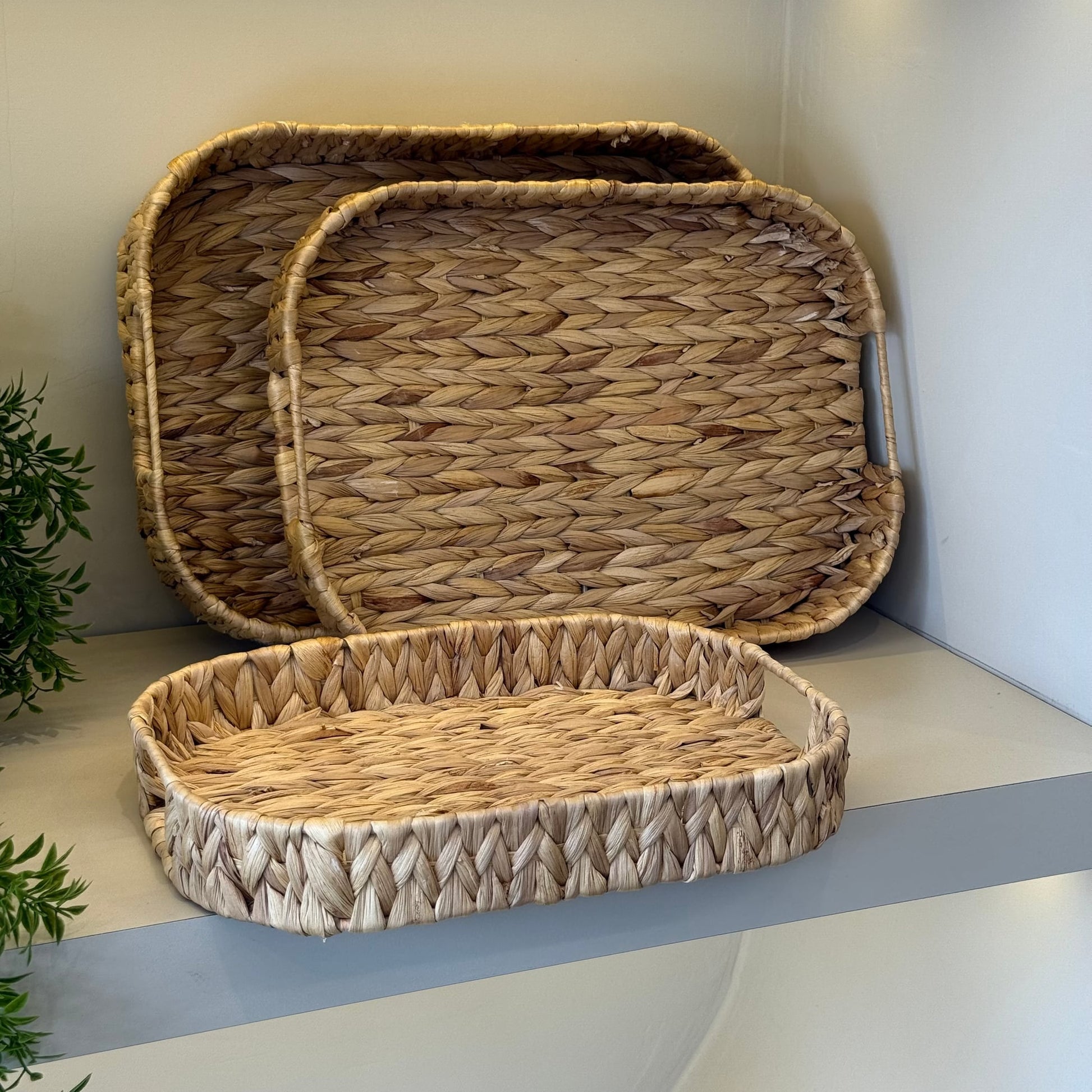 ZBERN Kalın Hasır 3 Boy Dikdörtgen Tepsi Seti