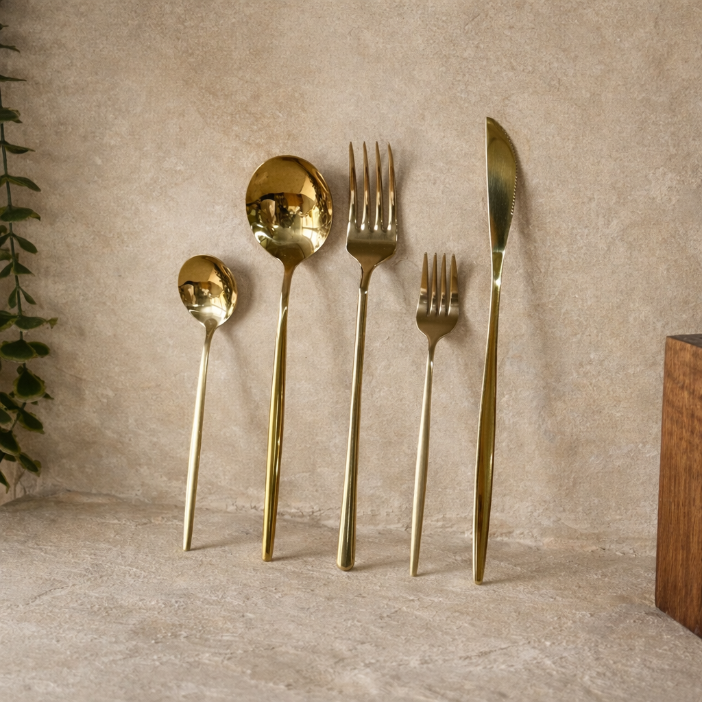 Zra Model 30 Parça 6 Kişilik Çatal Kaşık Bıçak Seti Gold (Çok Satanlarda)